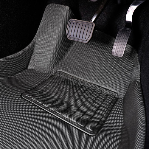 With its carbon fiber embossed pattern and non-slip rubber surface layer, it effectively protects the vehicle's interior.