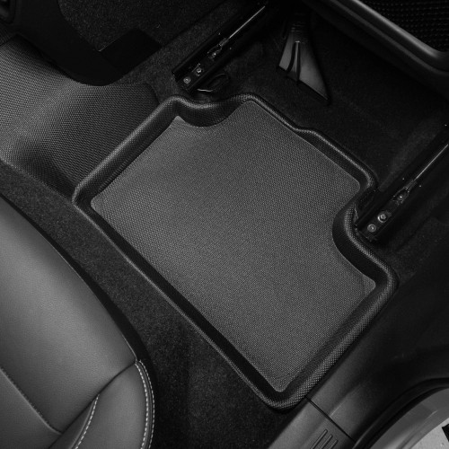 With its carbon fiber embossed pattern and non-slip rubber surface layer, it effectively protects the vehicle's interior.