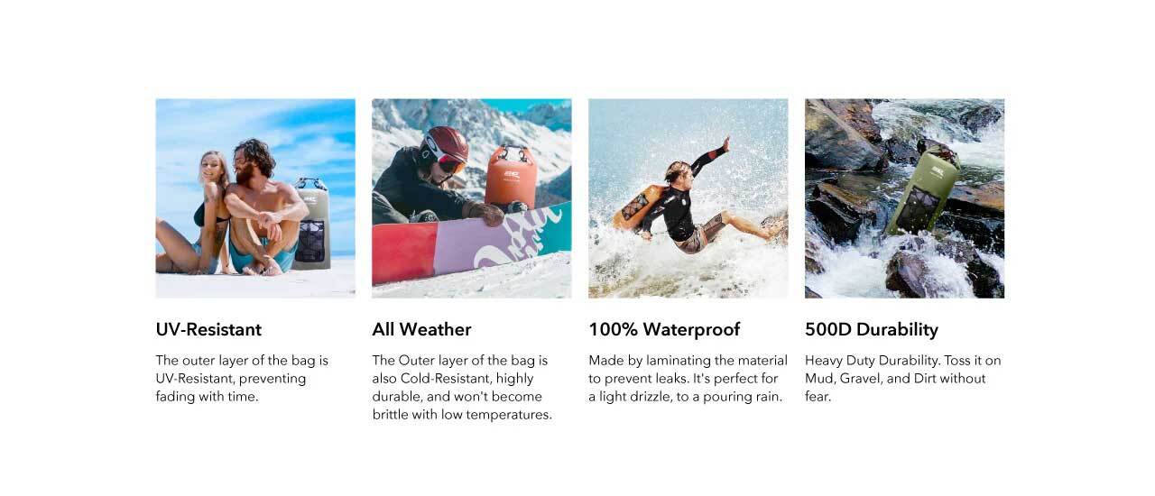 The outer layer of the bag is UV-Resistant, preventing fading with time.